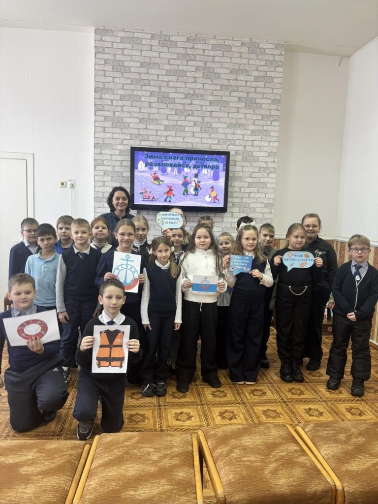 В конце мероприятия ребята посмотрели мультфильм «Волшебная книга МЧС. Зимний водоём» и ответили на вопросы интеллектуального квиза.