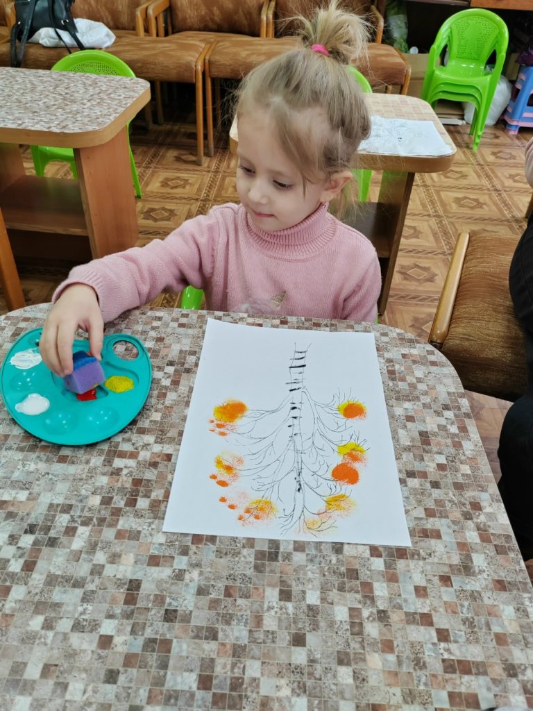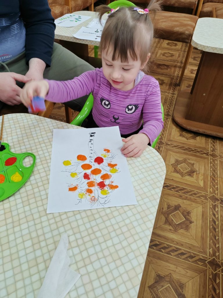 - шамповка поролоновыми тампонами «Осенняя берёза»;