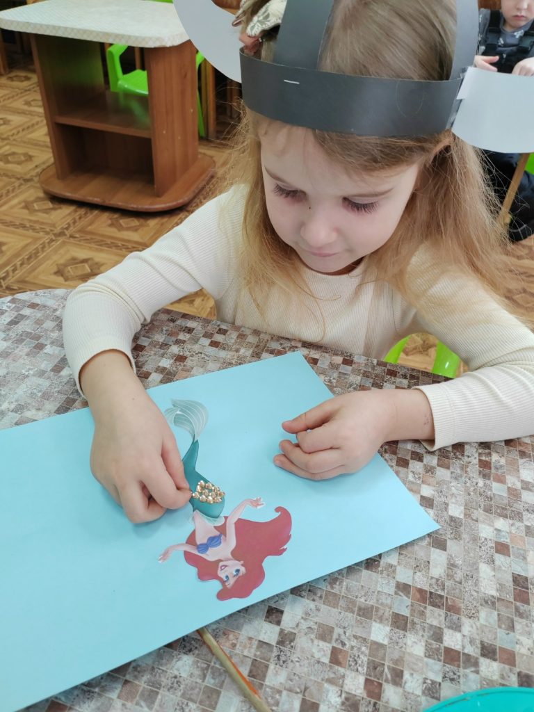 Традиционно, ребята заполнили страничку паспорта юного путешественника по сказкам, а затем приступили к выполнению творческих заданий. Был изготовлен шлем викингов – предков датчан. С Русалочкой дети отправились в порт Копенгагена, где установлена статуя одноименному сказочному персонажу, а затем создали свою иллюстрацию к сказке: выполнили аппликацию «Русалочка» и украсили ее хвост декоративными элементами, дополнили работу морскими обитателями – крабом и рыбкой. Вместе с оловянным солдатиком ребята посетили самый большой Леголенд в мире на полуострове Ютландия, а затем из бумажных лего-деталей собрали этого сказочного героя.