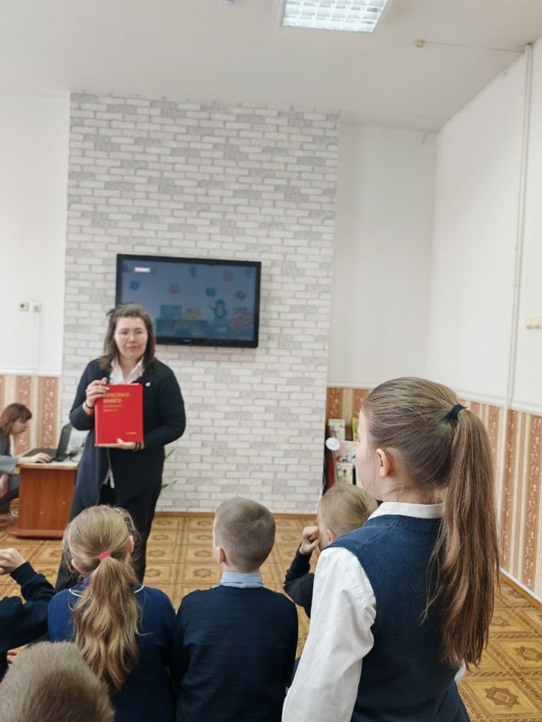Ученики 2 «А» класса ГУО «Средняя школа №10 им. В.М.Азина г. Полоцка» узнали историю создания Красной книги и рассмотрели все пять ее изданий и переизданий. О них детям рассказала заведующий Природно-экологическим музеем г. Полоцка Жанна Юрьевна Колосова. Она также поделилась интересными фактами о животных и растениях, занесенных в Красную книгу Беларуси, объяснила причины внесения в издание и ежегодного увеличения видов, нуждающихся в защите.