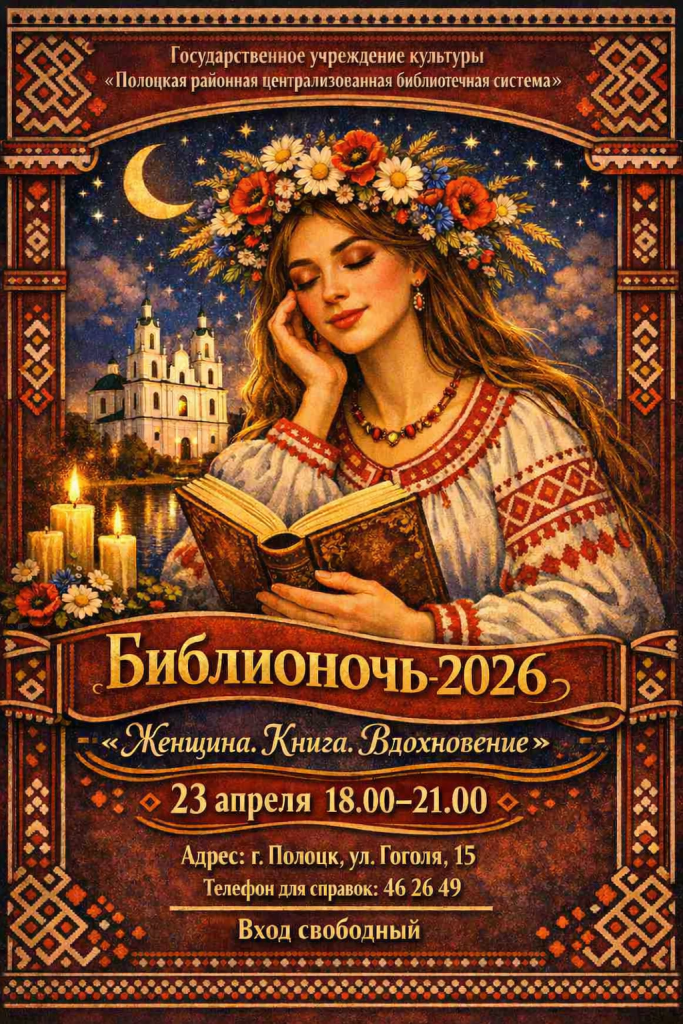 Центральная районная библиотека им. Ф.Скорины приглашает всех желающих на культурно-просветительскую акцию «Библионочь-2026», которая состоится 23 апреля.
